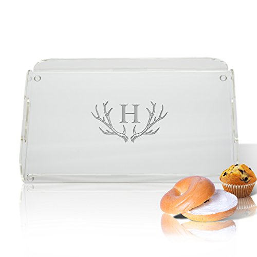 -. Title : Acrylic Serving Tray with Handles Antler Initial Motif