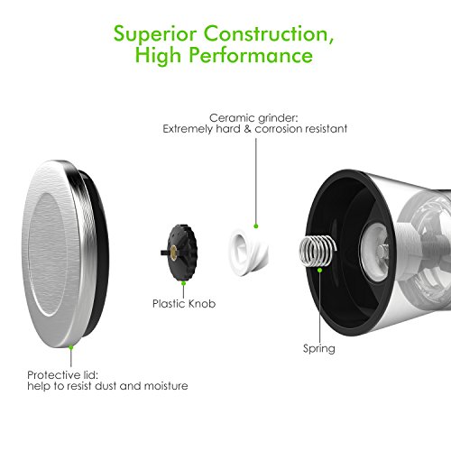 ADJUSTABLE GRIND SETTING: Comes with a turnable non-corrosive ceramic grinding mechanism(a ceramic rotor) which allows you to adjust the coarseness of your spices to your satisfaction. Note: pepper is not included.