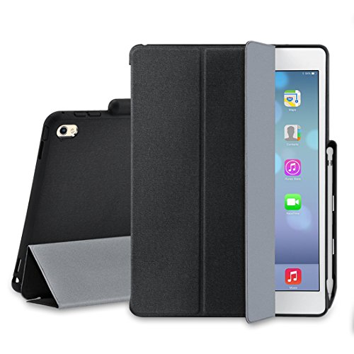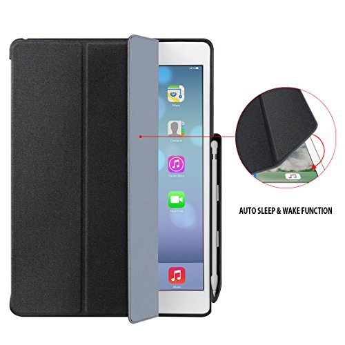iPad Pro 9.7 Case, TH [Brief Business Style] Premium PU Slim Fit Flip Folio Case with Apple Pencil Holder, [Stand Feature], Auto Sleep/Wake Smart Fabric Cover for iPad pro 12.9 inch-Black (MM627)