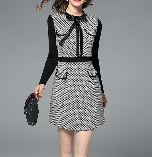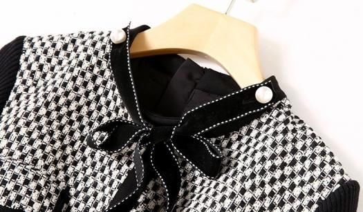 パーティードレス ミニ丈 ワンピース チェック柄 タイト リボン パールボタン 大人 上品 エレガント お呼ばれ デート drgz2568