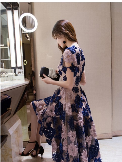 お花があしらわれた半袖ワンピース。