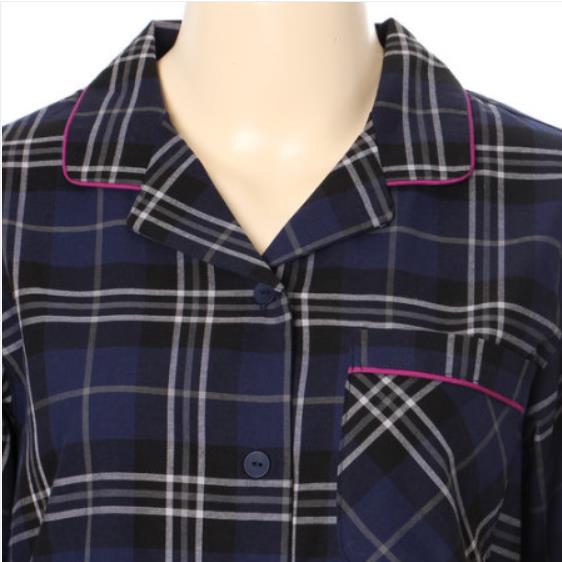 데일리용으로 착용하기 좋은 네이비 컬러의 선염 체크 여성 잠옷 입니다.천연 소재인 레이온과 폴리에스터 소재로 착용감이 좋으면서도 세탁이 쉬운 제품입니다.가볍고 착용감이 편안하여 전 연령층 인기가 좋아 선물용으로 추천합니다.커플 세트 남성 잠옷 MP8587A 별도 구매 가능 합니다.