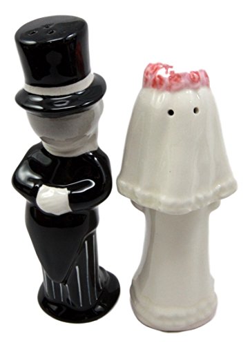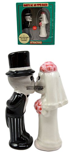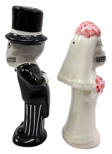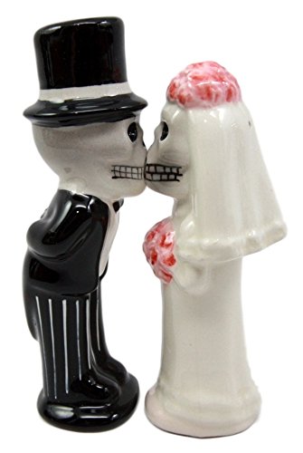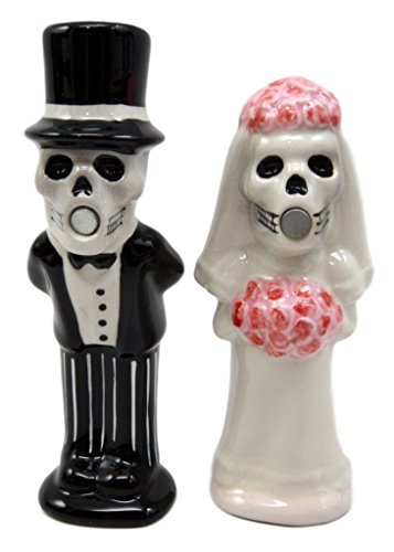 Atlantic Collectibles Day Of The Dead Salt & Pepper Shakers Skeleton Couple Bride & Groom Ceramic Magnetic Figurine Set 4.75"H