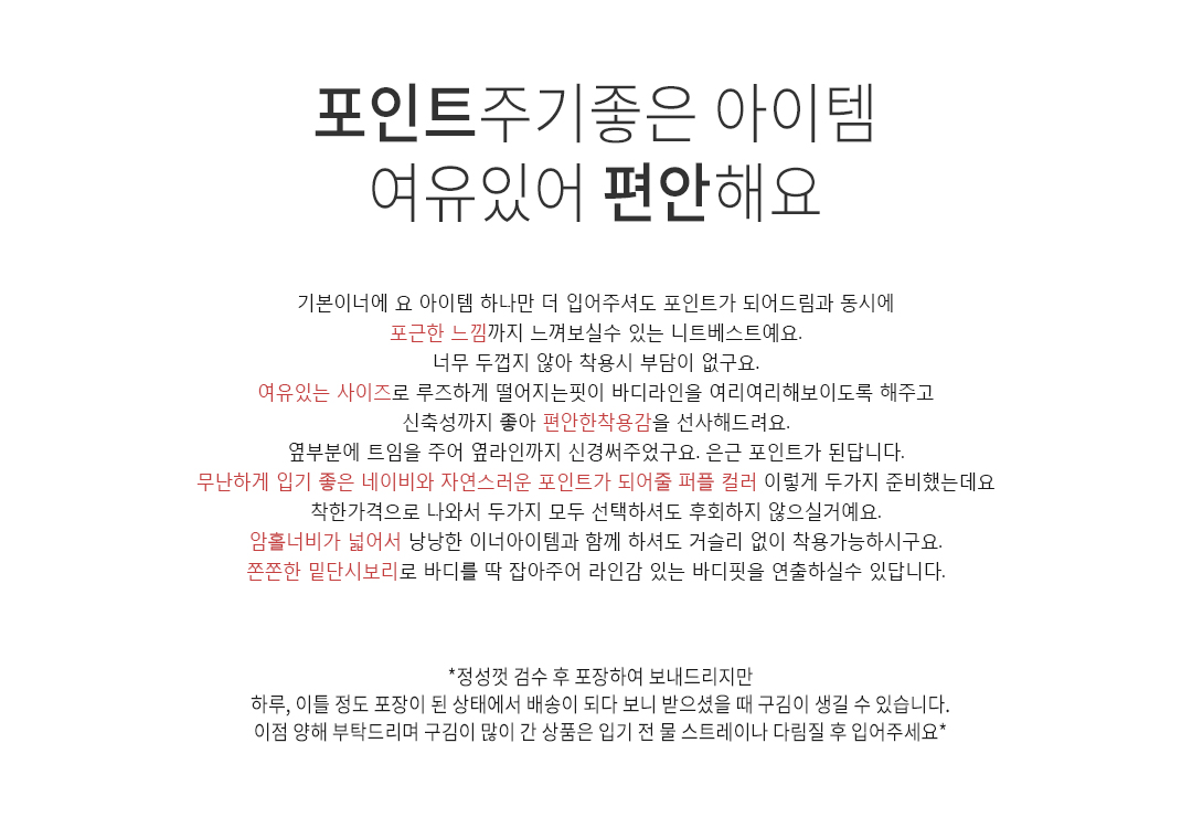 .같은 사이즈라도 체형에 따라 핏감이 조금씩 다를 수 있습니다.