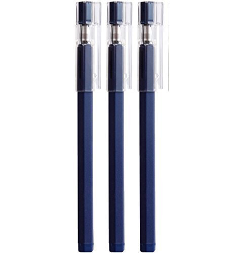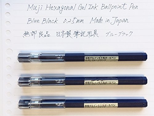 Moma Muji Hexagonal Gel Ink Ballpoint Pen, 0.25mm, Pack of 3, Blue Black (Japan Import)