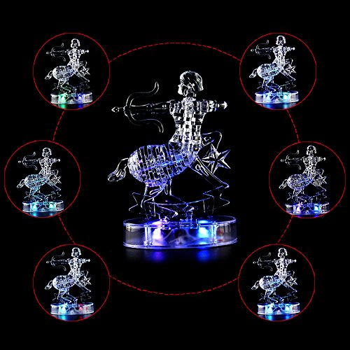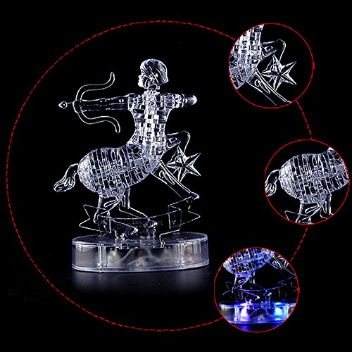 -. Binding : Toy -. Brand : Coolplay -. Feature : Flash Sagittarius 3D Crystal Puzzle includes 40pcs / Enjoyable to work on, challenging to complete, fun to display / Delight your mind and eyes,beautiful enough to adorn any room / Product Dimensions: 4.5" x 6.1" / Package included: 1x 3D Sagittarius Pisces Crystal Puzzle ( battery included), 1x Instruction Manual -. IsAdultProduct : 0 -. Label : Coolplay -. Manufacturer : Coolplay -. PackageQuantity : 1 -. ProductGroup : Toy -. ProductTypeName : TOYS_AND_GAMES -. Publisher : Coolplay -. Studio : Coolplay -. Title : Coolplay® DIY 3D Crystal Puzzle with LED Light Constellation Series - Sagittarius