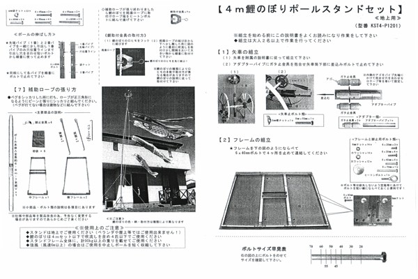| 鯉のぼり用Wパイル杭方式ポール 2本杭で地面にしっかり杭打式 | 7m鯉用 | 6m鯉用 | 5m鯉用 | 4m鯉用 |
