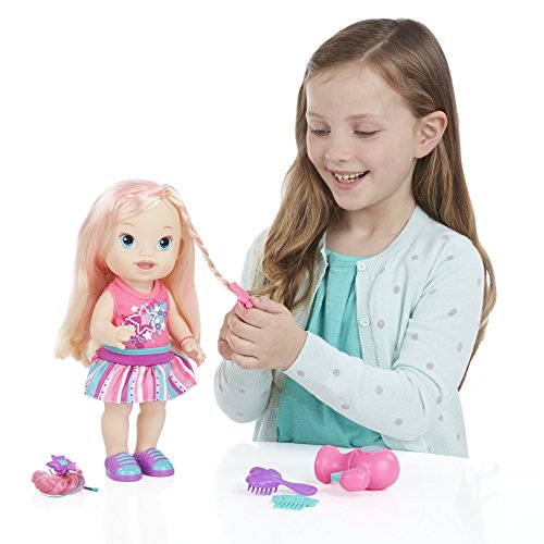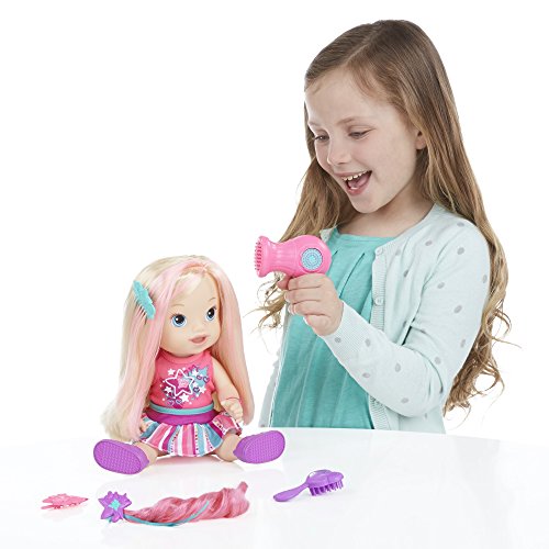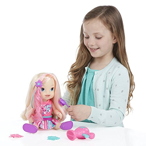 Baby needs to look her best and your little girl will love to be her stylist and mommy! This adorable Play 'n Style Christina doll has long, beautiful hair and she comes with all the hairstyling accessories your little girl needs for hours of fashion and fun. With the pretend hair dryer, brush and comb, she can give her baby all kinds of stylish looks, and the hair extension and barrette will give her fun fashion options! She'll feel like a real mommy and a hairstylist with the Play 'n Style Christina doll! Baby Alive and all related characters are trademarks of Hasbro.Feature