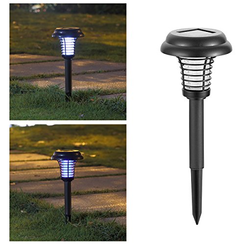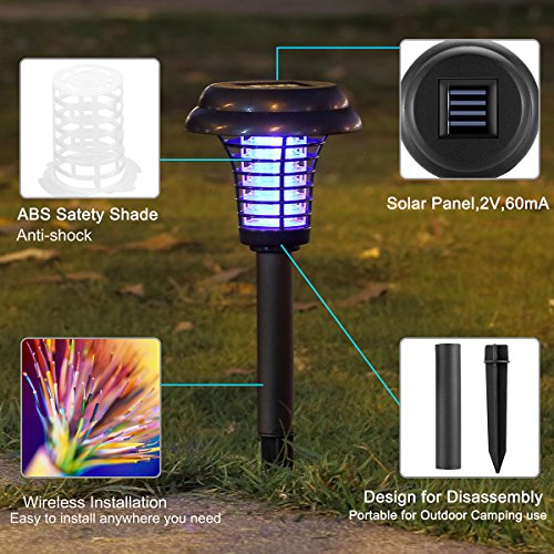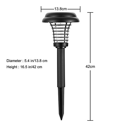 [Multi-Functional] - Serves as a bug zapper or a garden lamp at night, you can hang it on the porch or a tree, place it flat on the floor or stake it into the ground of your lawn, garden or patio, the golden color and vintage lantern shape design makes it an attractive decoration at the same time