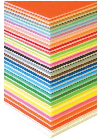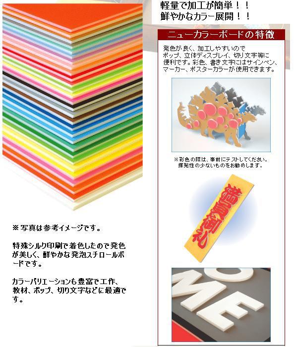 特殊シルク印刷を施した色付き発泡ボードです。色が艶やかで発色が美しく、工作・POP・教材・切文字など多種多様にご利用頂ける5mm厚のカラーボードです。