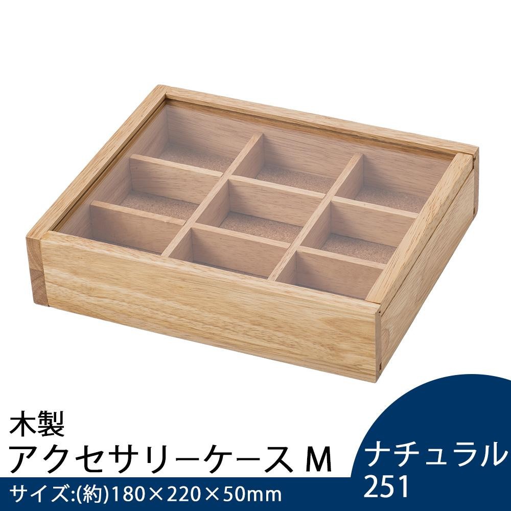 シンプルながらもぬくもりを感じるデザインが、どんなインテリアにも合わせやすい♪アクセサリーや小物をすっきり収納できます!! 製造国:ベトナム 素材・材質:天然木(ラバーウッド)、MDF、アクリル板 商品サイズ:(約)180×220×50mm ※サプライヤー直送品 ご注文後2~3営業日後の出荷となります【商品名】木製 アクセサリーケース M ナチュラル 251 550-251