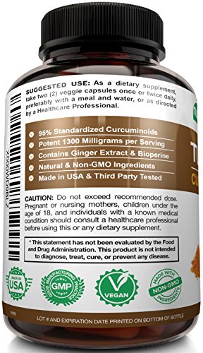 POTENCY: Provides 1000MG of Turmeric Curcumin, and 5MG of Patented BioPerine (Black Pepper Fruit Extract) per Serving. BioPerine helps enhances Absorption and Bio-availability; This Formula is not Standardized to 95% Curcuminoids