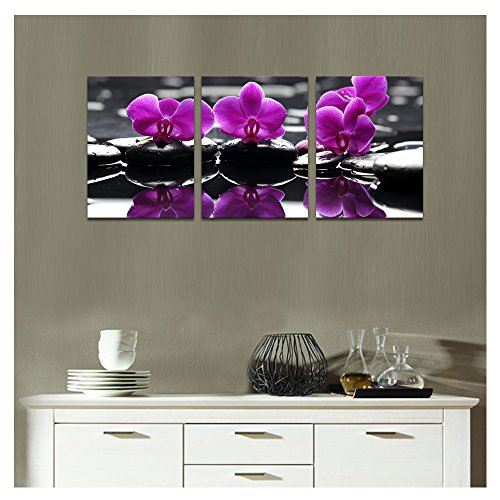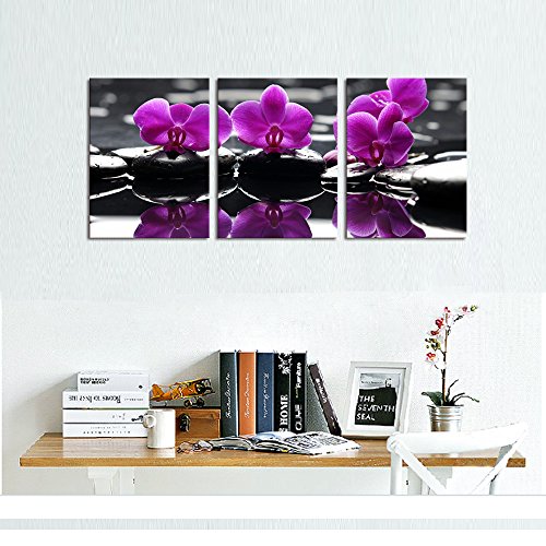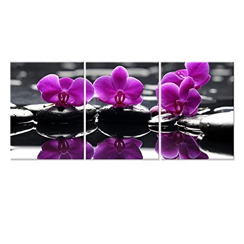CANVAS WALL ART,ZEN STONE AND ORCHID CANVAS PRINTS ,NICE FLORAL HOME DECAL ART,FRAMED AND STRETCHED ON WOOD BAR,INTERIOR ROOM DECOR PICTURE ART,READY HANGING ON