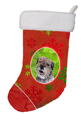Caroline's Treasures Border Terrier Red Snowflakes Holiday Christmas Stocking, 11 x 18", Mulitcolor