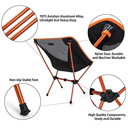 - Heavy Duty. Aircraft-grade 7075 Aviation Aluminum Alloy is one of the highest strength aluminum alloys, Light Quality , Heavy Duty. Non-slip rubber covers on the feet ensure a firm stand. Our sturdy and durable chair has a load capacity of up to 250 pounds. More interestingly, you can throw it to your friend if you need.