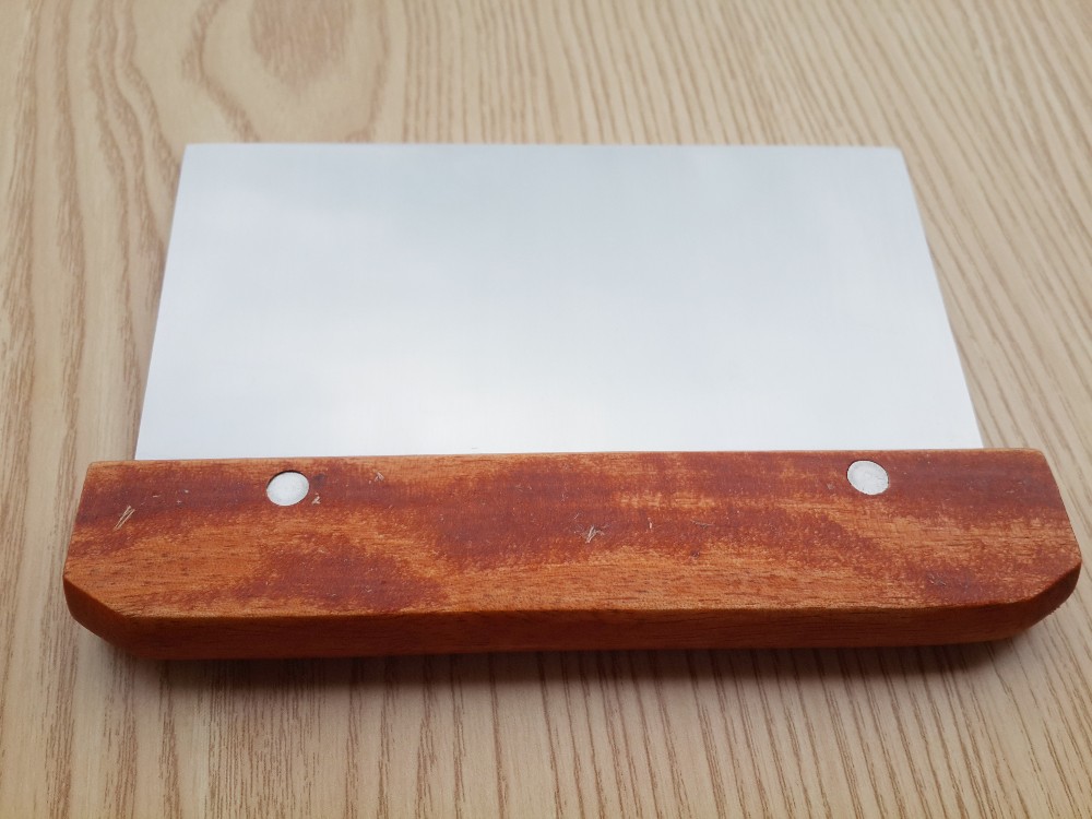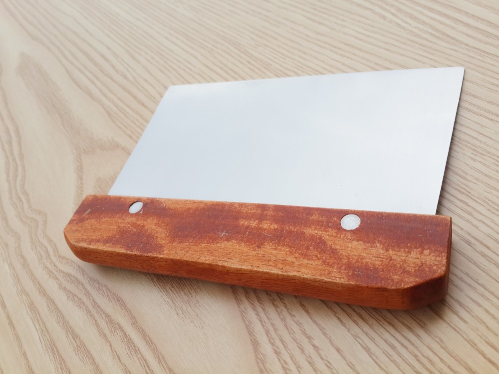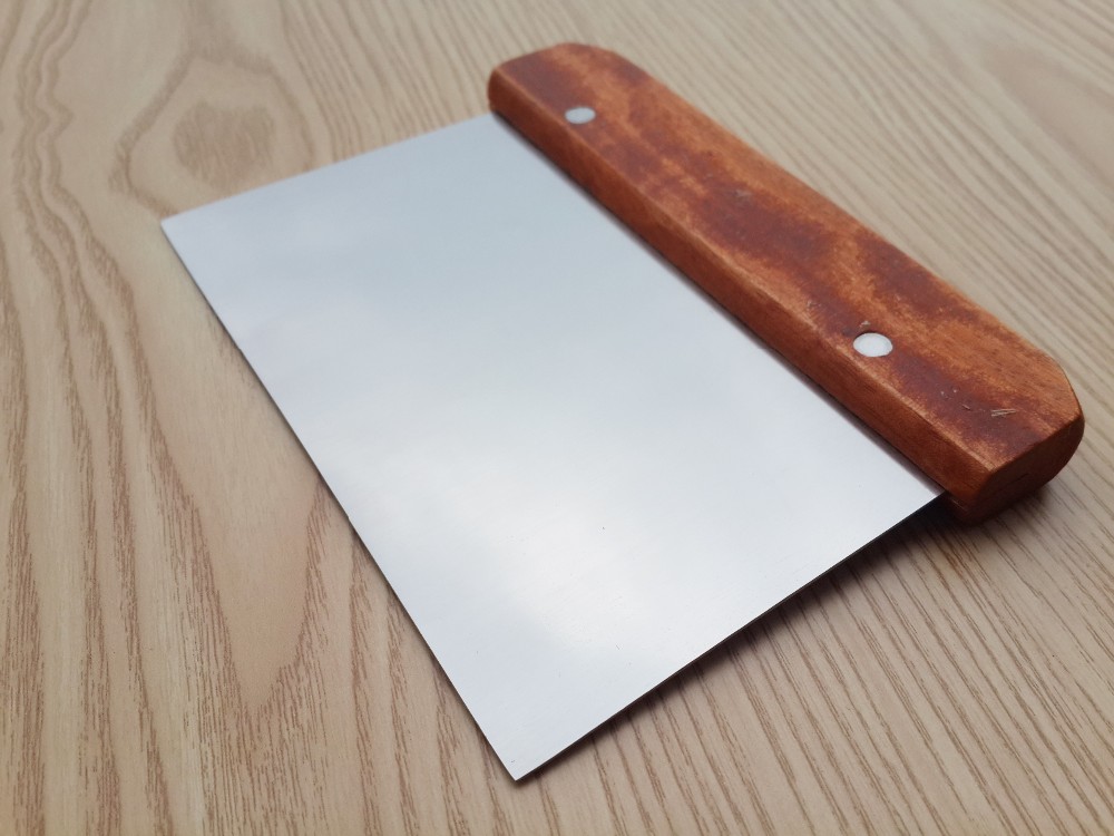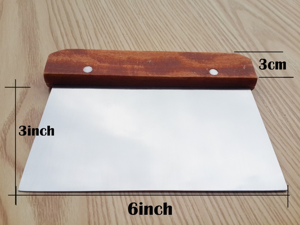 This dough scraper features a sturdy wood handle and a durable stainless steel blade for easy cutting, slicing, scraping and lifting.