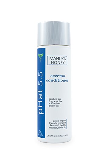 -. Binding : Health and Beauty -. Brand : pHat 5.5 -. Feature : MANUKA HONEY AND ALOE VERA sooth dry, inflamed, irritated skin and scalp / pH BALANCED AT 5.5 - Which makes it gentle and naturally helps calm your skin / STOP ITCHING NOW - Eczema and Atopic Dermatitis are relieved by use of our natural conditioner / ORGANIC ALOE VERA and other natural ingredients penetrate down to the cause of the eczema / HIGHLY MOISTURIZING for your hair, scalp and skin. -. IsAdultProduct : 0 -. Label : pHat 5.5 -. Manufacturer : pHat 5.5 -. PackageQuantity : 1 -. ProductGroup : Beauty -. ProductTypeName : HEALTH_PERSONAL_CARE -. Publisher : pHat 5.5 -. Studio : pHat 5.5 -. Title : pHat 5.5 - Eczema Conditioner