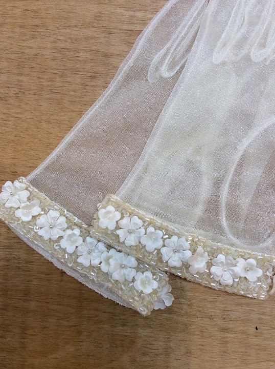 | グローブやレースの生地は繊細なものですので、場合によっては少しのひっかかりなどでも、糸ひけなどが発生する場合もございます。お取り扱いに気をつけてください。 |