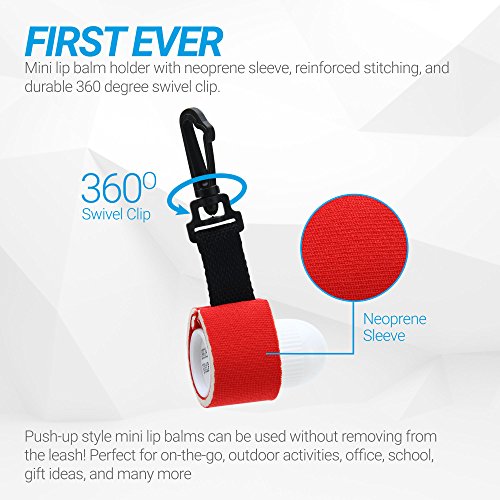✅ FIRST EVER: mini lip balm holder with neoprene sleeve, reinforced stitching, and durable 360 swivel clip. Push-up style mini lip balms can be used without removing from the leash! Perfect for on-the-go, outdoor activities, office, school, gift ideas, and many more