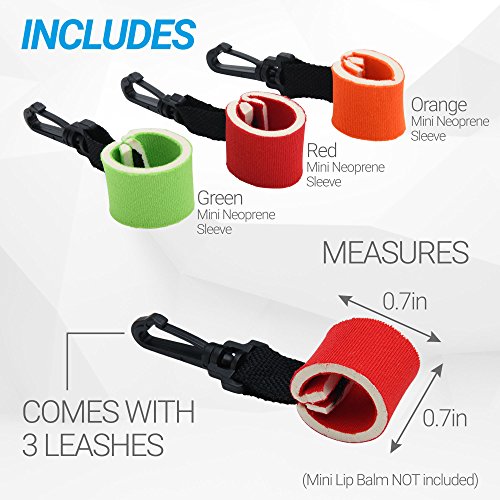 Mile High Online presents the first ever Mini Lip Balm Holder/Leash, made with a neoprene sleeve, reinforced stitching and a durable, 360-degree swivel clip. This leash is mini-sized and light-weight, making it a perfect accessory for an on-the-go lifestyle. Everywhere you go, it goes! Take it everywhere; Hook it to anything! Featuring bright colors (Red, Green, Orange) so you'll spot it easily; never lose your mini lip balm again. Great for gifts and giveaways. So many uses. Be creative, and whatever you do, DO YOU! Designed specifically for mini lip balms only, but may be compatible with hand sanitizers, pens, breath sprays, vaporizers, and atomizers. *NOTE, may NOT work with traditional, screw-type lip balms* This set includes 3 leashes: Red, Orange, Green (one of each color). May be a choking hazard: KEEP OUT OF REACH OF SMALL CHILDREN For more information on compatible products, see our product bundles with Chap-Ice Mini Lip BalmsFeature
