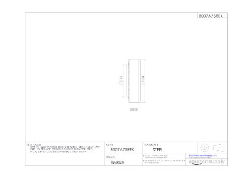 Timken 16283 Tapered Roller Bearing, Single Cup, Standard Tolerance, Straight Outside Diameter, Steel, Inch, 2.8440" Outside Diameter, 0.7500" Width