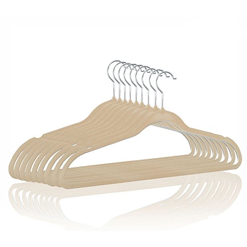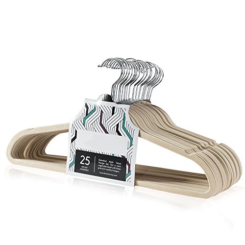 Velvet Hangers Non-Slip Flocked Clothes Hangers 25 Pack Ultra Thin Space Saving Design for Men and Women Dress Suit - 360 Degree Swivel Hook - Heavy Duty Construction with Lifetime Warranty - Beige