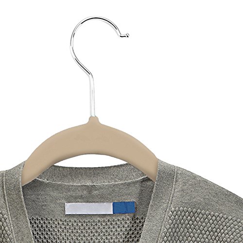 ONLY THE HIGHEST GRADE VELVET: 25 attractive beige velvet non slip hangers featuring 360 degree swivel, shiny, chrome hooks and notched shoulders that will make hanging clothes a simple pleasure! Measures 17.5 by 9 by 0.24 inches each
