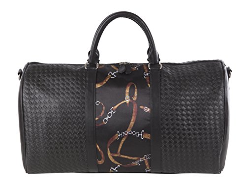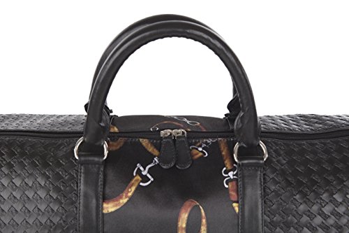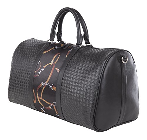 -. Title : Huntley Equestrian Black Duffle Bag with Printed Fabric Trim