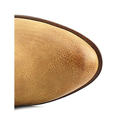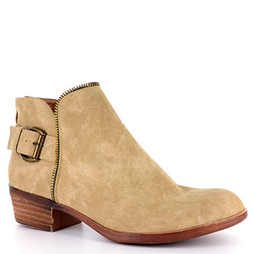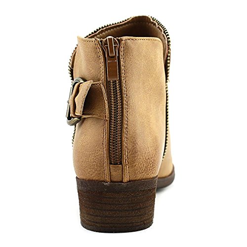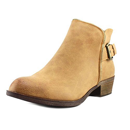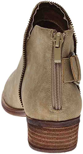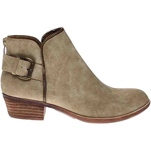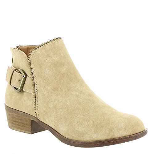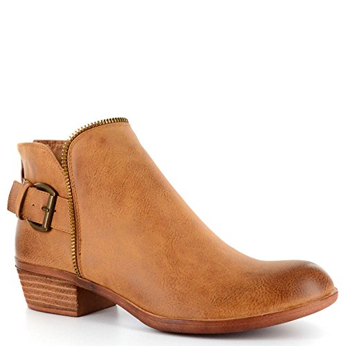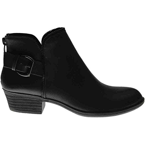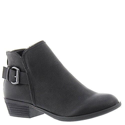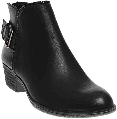 Binding : Apparel Product Description *Add edge to your fall looks with this chic, zipper-detailed bootie *Faux leather upper *Zipper edge detail and adjustable metal buckle strap along back *Lightly cushioned footbed *3/4" stacked heel *Available in whole sizes only, half sizes please order the next size up 0