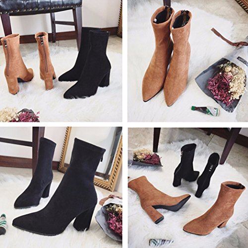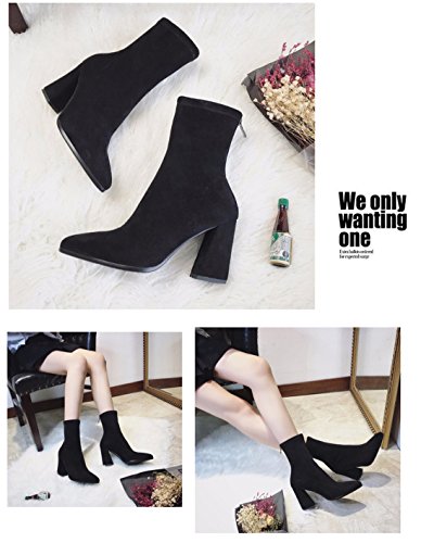Binding : Apparel Product Description Size: #9733US Size 5------UK:2.5---EUR:35.5---Label Size:34----Heel-toe(CM):22 #9733US Size 5.5----UK:3-----EUR:36-----Label Size:35----Heel-toe(CM):22.5 #9733US Size 6------UK:3.5---EUR:36.5---Label Size:36----Heel-toe(CM):23 #9733US Size 6.5----UK:4-----EUR:37-----Label Size:37----Heel-toe(CM):23.5 #9733US Size (7.5-)-UK:5-----EUR:38-----Label Size:38----Heel-toe(CM):24 #9733US Size (8)----UK:5.5---EUR:38.5---Label Size:39----Heel-toe(CM):24.5 Features: Material: stretchy faux suede fabric vamp, non slip gum rubber sole. Stylish pointed toe with comfortable chunky heel,suit for casual,party,office,wedding or club wear. Closure type:back zipper. Please check the size information before ordering.And consider your feet shape since it's a pointed toe shoes. NOTE: As different computers display colors differently,the color of the actual item may vary slightly from the above images.