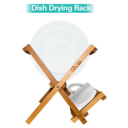 Bamboo Dish Rack, ANKO 100% Natural Bamboo 2-Tier Collapsible Dish Drying Rack Kitchen Utensil Holder, Wooden Dish Drainer. (NATURAL-1 PACK)