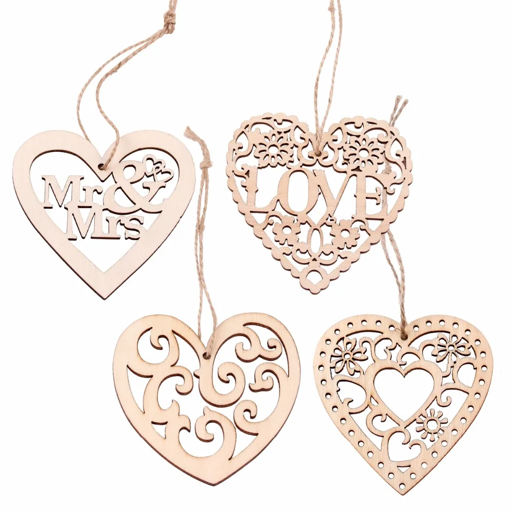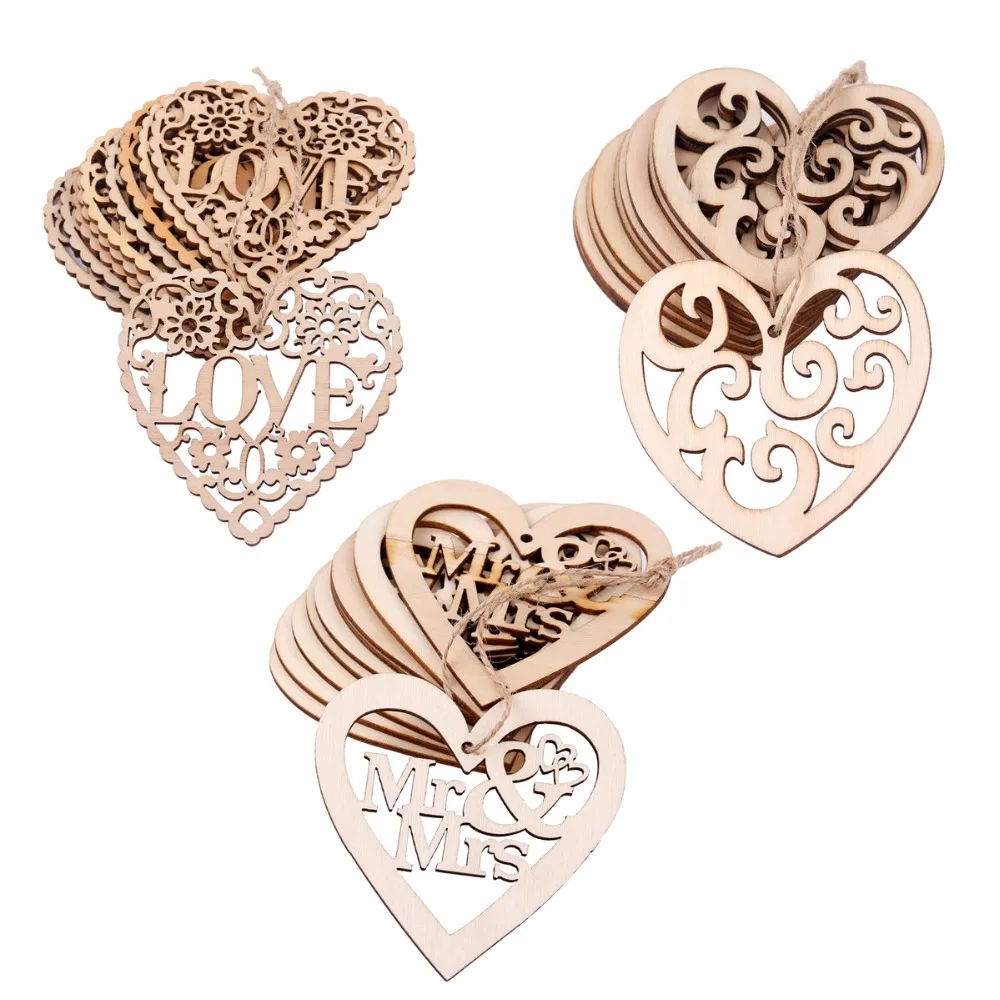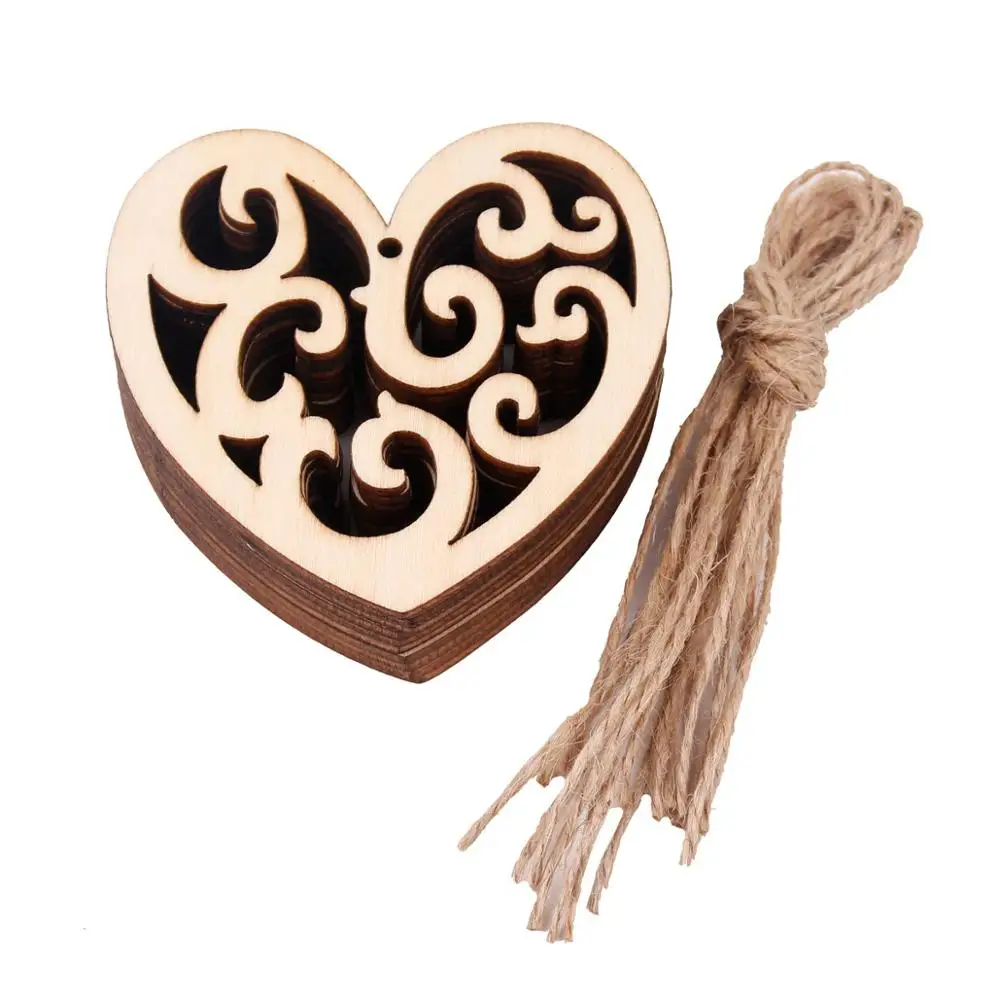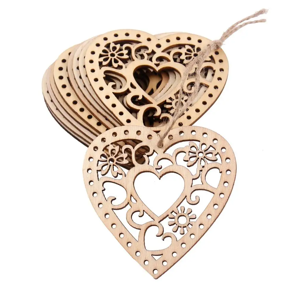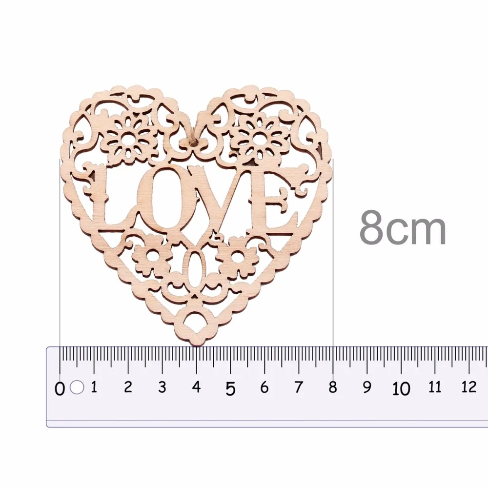 Package Including:10 x Wooden Heart Embellishments and 10 strings