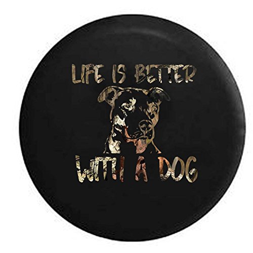 Camo - Life is Better with a Dog Pitbull Pit Bully Breed Lab Mutt Mix K9 Spare Tire Cover OEM Vinyl Black 33 in