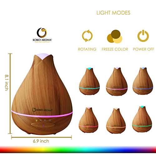 RELAXING AND THERAPEUTIC EFFECTS - The wonderful scents from the essential oils along with the alternating colors allow for peace and relaxation. Ultra High Water Capacity: 530 mL. Size: 6.6" x 8.5". Operates up to 15 hours long and can fill a 400 sq. ft. space