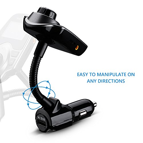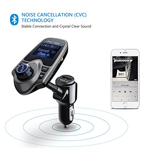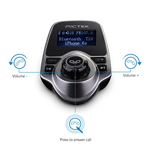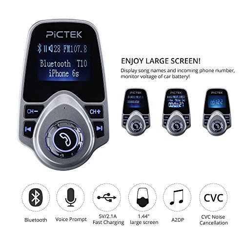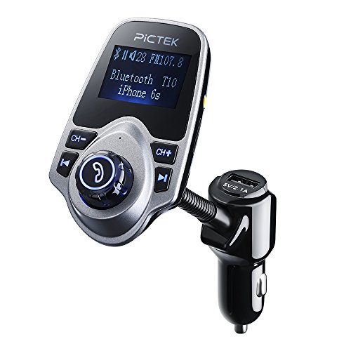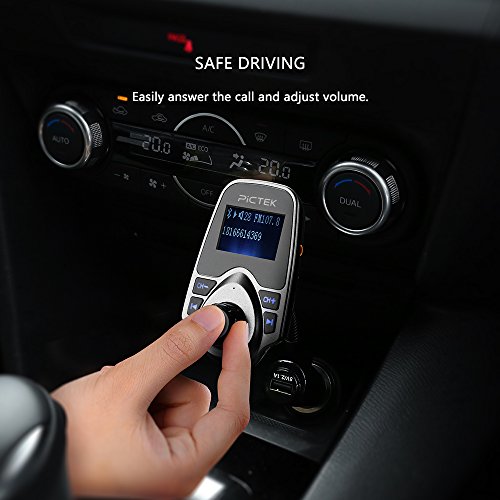 Pictek Bluetooth FM Transmitter& USB Car Charger Wireless Car Kit with 3.5mm Audio Port, TF Card Slot, 1.44 Inches Screen Supports Display Car Battery Voltage, Song Names, Incoming Phone Number