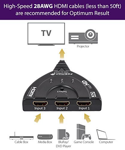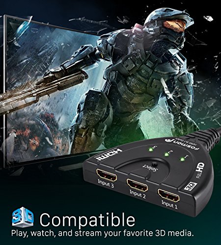 Ran out of HDMI ports on your HDTV/monitor/projector? Want to reduce the mess of cables connected to it? Fosmon's 3x1 HDMI Intelligent Switch with Pigtail Support will take care of these problems. It has 3 HDMI input sources to provide plug-and-forget auto sensing capabilities that automatically switch inputs when a signal is detected. A button to manually switch between the 3 sources is also built-in. Powered from Connected Devices