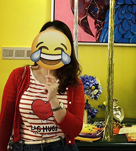 - UNIQUE EMOJI SET--A huge variety of popular photo booth props sticks now can play in the real world, includes tears of joy, heart eyes, kissy face, sunglasses face, silly wink, emoji of Poo, etc