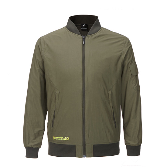 - 에코 소재를 사용한 스타티움 형태의 남성 레블스 프리미엄 보머 자켓.