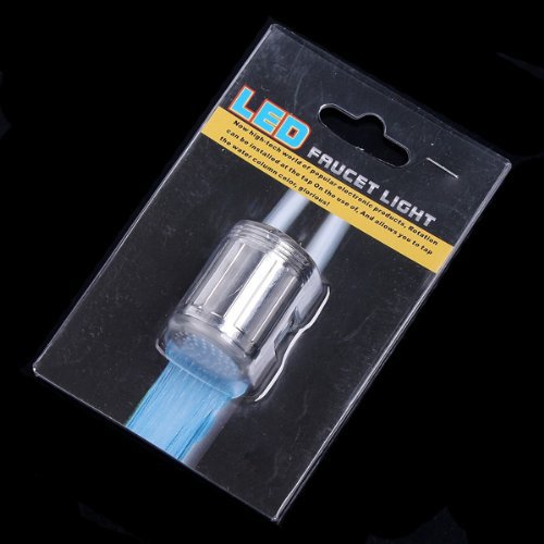 -. Binding : Misc. -. Brand : TOOGOO(R) -. Color : Blue -. EAN : 0888309802583 -. Feature : This little device fits on most taps and lights up a set of LEDs when you turn on the tap. The light is activated by water pressure and turns off automatically with the water. / 7 color are mixed displayed automatically when water flow. Main colors are Green, Red & Blue. / ABS chroming material, excellent corrosion resistance, durable. / Transforming the stream of water into a beautiful waterfall of light. Offer you a delight & wonderful experience. / Ideal for bathroom or kitchen to make it fantastic. Get the CE & RoHS certificates. -. Label : SODIAL(R) -. Manufacturer : SODIAL(R) -. MPN : 8196 -. PackageQuantity : 1 -. PartNumber : 8196 -. ProductGroup : BISS -. ProductTypeName : PLUMBING_FIXTURE -. Publisher : SODIAL(R) -. Studio : SODIAL(R) -. Title : TOOGOO(R) 7 Colors RGB LED Light Water Stream Faucet Tap -. UPC : 888309029089