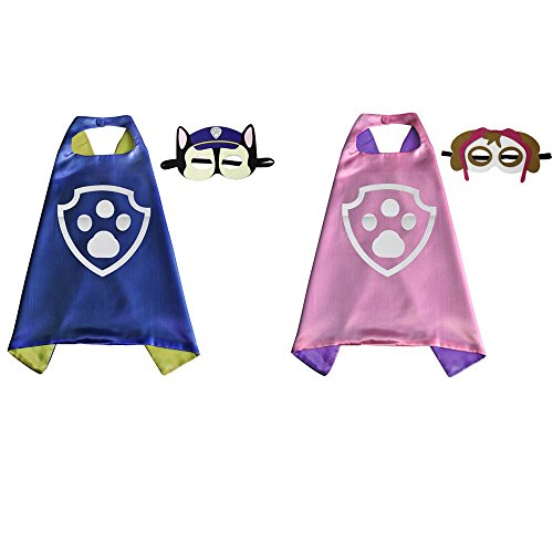 -. Brand : Gold Hands -. Color : multi -. Department : unisex-child -. Feature : New Styles Dog Patrol Capes and Masks 2 Sets (2 Capes + 2 Masks): Chase and Skye / Satin cape - Double Sided Capes, Easy Velcro Neck. / Felt Masks - Comfortable for Children Hours of Pretend! / Size: about 70*70 CM (27.55 In). Suitable for all children. / Great for boys and girls to pretend on play date! -. Label : Tuo Jing -. Manufacturer : Tuo Jing -. PackageQuantity : 2 -. ProductGroup : Apparel -. ProductTypeName : CHILDRENS_COSTUME -. Publisher : Tuo Jing -. Size : 70*70 CM -. Studio : Tuo Jing -. Title : New Style Dog Patrol Capes and Masks For Kids Costumes 2 Sets -. UPC : 603149336025