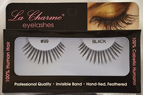 -. Binding : Misc. -. Brand : la charme -. Color : Black -. EAN : 0020504045932 -. Feature : Highest Quality 100% human hair false eyelashes / Preferred by professionals both in the US and Internationally / Easy to apply and remove, reusable with proper care / Best selling eyelash on the market / Adhesive not included -. IsAdultProduct : 0 -. Label : Garland Beauty -. Manufacturer : Garland Beauty -. PackageQuantity : 6 -. ProductGroup : Beauty -. ProductTypeName : BEAUTY -. Publisher : Garland Beauty -. Size : ONLY SIZE -. Studio : Garland Beauty -. Title : La Charme #99 False Eyelash (Pack Of 6) 100% Human Hair -. UPC : 020504045932