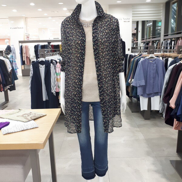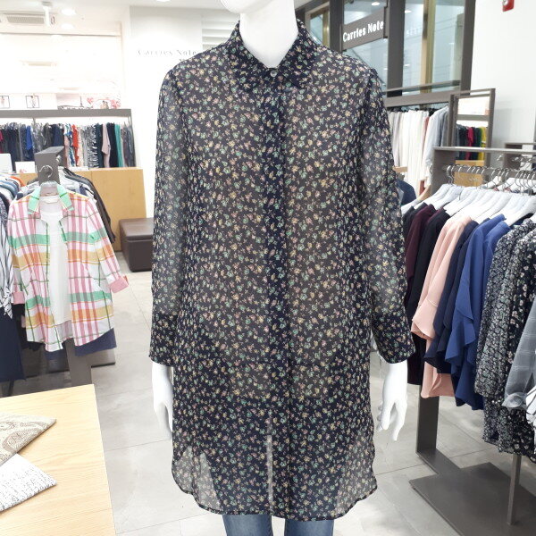 우아한 무늬의 얇고시원한 롱블라우스 기본티위에 가볍게코디하기 좋은아이템