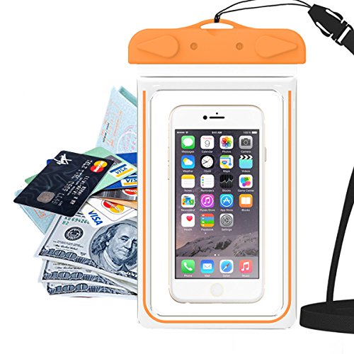 Universal Waterproof Case, iThrough Universal Waterproof Pouch/Waterproof Bag/Dry Bag/Waterproof Case for iPhone 6s/6 Plus/SE/5/5S/5C/4/4S/Samsung Galaxy S7/S6/edge/S3/S4/S5/Note 2/3/4/5 (Orange)