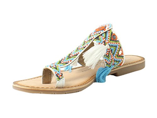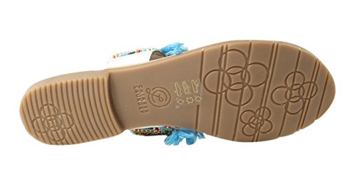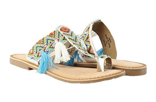 Product DescriptionMulticolored flat sandal/slide with toe ring0