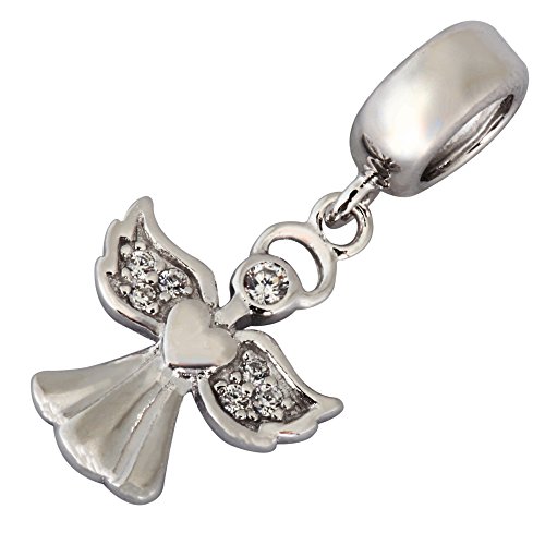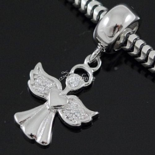 Sparkling Winged Angel Dangle Sterling Silver Charm Bead for European Charm Bracelets #EC512