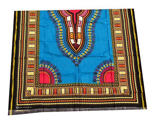 RaanPahMuang African Dashiki Colour Cotton Fabric Suitable for 1 Shirt Design, Sky Blue