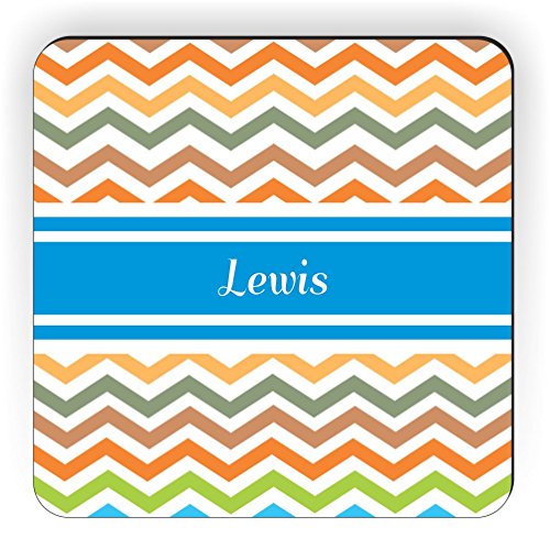 Rikki Knight "Lewis" Blue Chevron Name Design Square Fridge Magnet