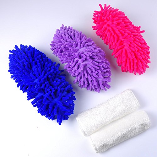 Studio : Lesonic Publisher : Lesonic Binding : Kitchen Product Description A perfect pair of mop shoes comes with extra absorbent multi-purpose cleaning towel. Both easily clean dirt places without kneeling or stooping. Made from chenille fibre / microfiber, it's ultra soft material, has strong decontamination and water absorption ability, never damage the surface of wiping. Can be used to clean your floor, window, bathroom, Office, Kitchen, House. Perfect for dust, dirt, and pet hair. Color: A pair of Pink, Purple Blue 2 pcs White Cleaning Towel 0