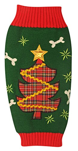 New York Dog Ugly Holiday Sweater for Pets, Green Christmas Tree, Medium