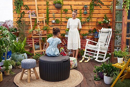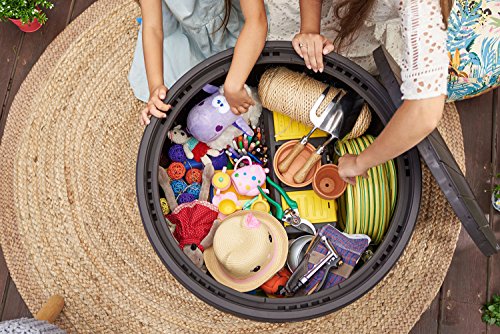 Keter 37 Gallon Circa Natural Wood Style Round Outdoor Storage Table Deck Box